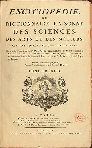 Denis Diderot (1713-1784) - in collaboration with Jean D'Alembert, founded the multivolume Encyclopédie designed to include all realms of knowledge. The work contained many articles attacking or critical of organised religion and Christian belief.