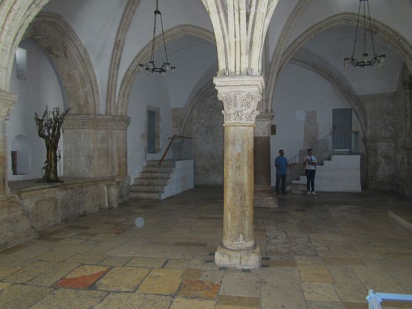 Pilgrims praying in reconstructed "Upper Room"