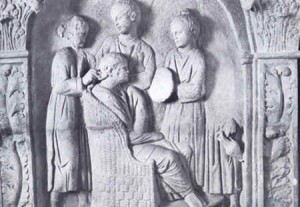 Slaves tend the hair of their mistress