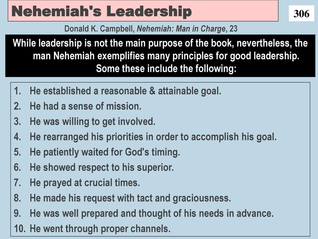 See John White's book, Excellence in Leadership, which draws on Nehemiah's life (available from Amazon or free download).